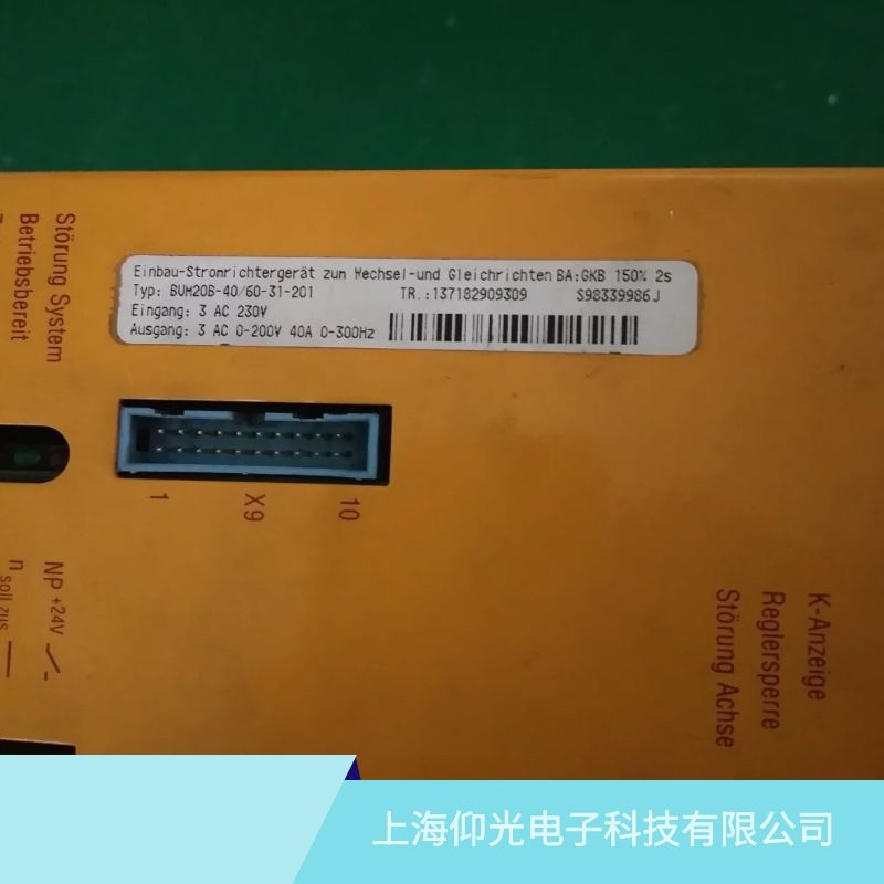 上海仰光電子科技有限公司成立于2011年,是一家專業從事工業自動化設備維修、維護及電氣系統維修改造的高科技公司。主要針對西門子(SIEMENS) ABB維修、包米勒維修,力士樂維修,發那科維修,貝加萊維修,AB維修,科爾摩根維修,倍福維修,富士維修,安川維修,三菱維修,海德漢維修,穆格維修,發格維修,普洛菲斯,路斯特維修,倫茨維修,斯德博維修,寶德維修,NUM維修,SEW維修,施耐德(Schneider)等品牌的驅動器,變頻器、伺服電機、直流調速器、軟啟動器、工控機、PLC、觸摸屏、數控系統、單片機、電路板等各種進口工業儀器設備,服務中心配備了百萬備品備件以及完備的診斷檢測儀器和軟件診斷技術,擁有一支技術精湛、經驗豐富的技術團隊。上海仰光電子科技有限公司維修免費全國,提供免費檢測,免費咨詢,同一故障六個月質保,修不好不收費用,如有任何故障可隨時聯系我們,上海仰光電子科技有限公司工程部溫馨提示:如果設備出現報警或者損壞,不是專業技術人員請勿私自拆卸,以防帶來安全隱患以及給設備造成二次傷害.上海仰光電子-您身邊的設備維修維護專員。