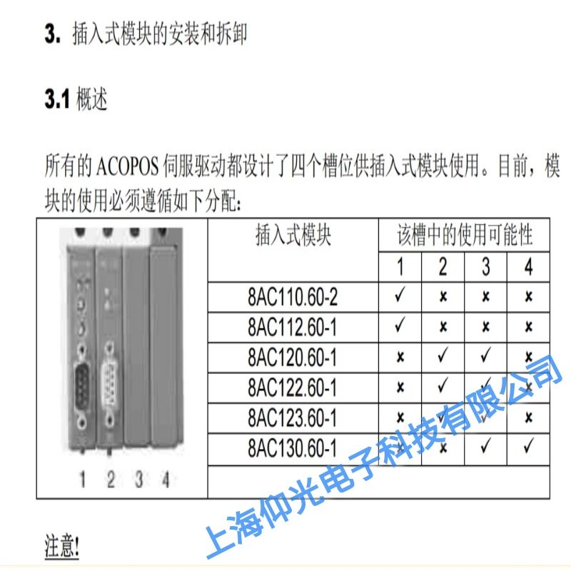貝加萊ACOPOS伺服驅動器插入式模塊安裝: