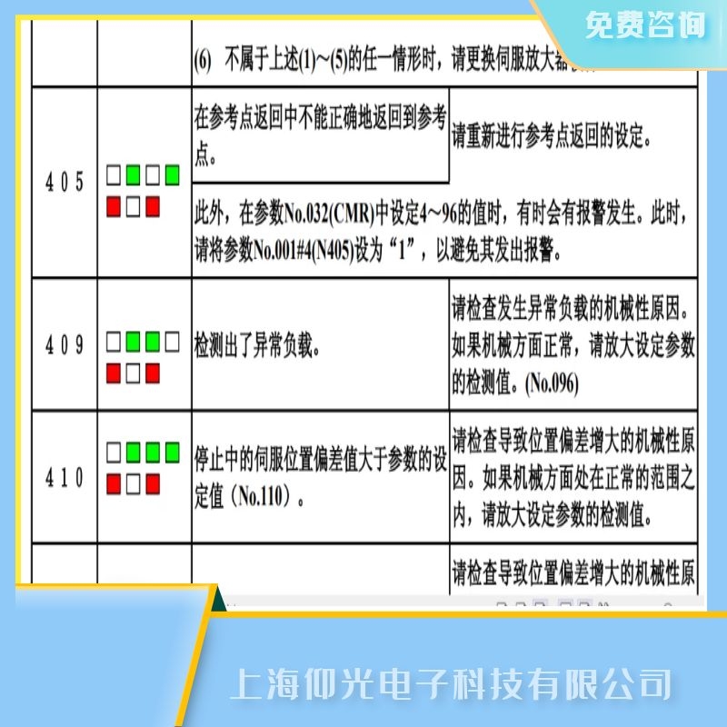 409 檢測出了異常負(fù)載。 請(qǐng)檢查發(fā)生異常負(fù)載的機(jī)械性原因。如果機(jī)械方面正常,請(qǐng)放大設(shè)定參數(shù)的檢測值。(No.096)