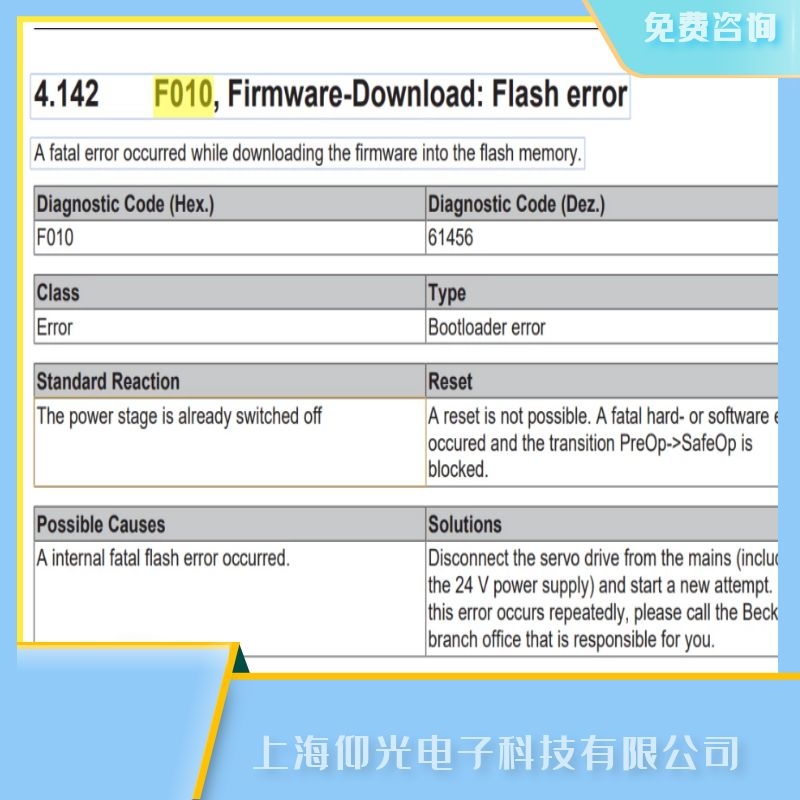 beckhoff伺服放大器報F010維修快修解析: