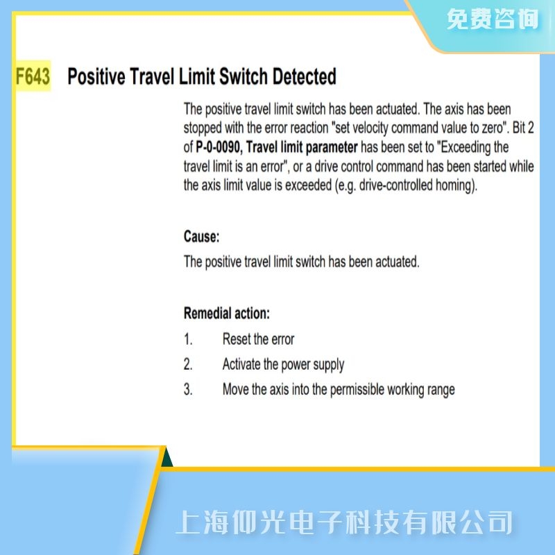 關于上海力士樂伺服驅動器報代碼F643檢測到正行程限位開關故障維修價格的技術問題上海仰光電子提供24小時免費咨詢服務.
